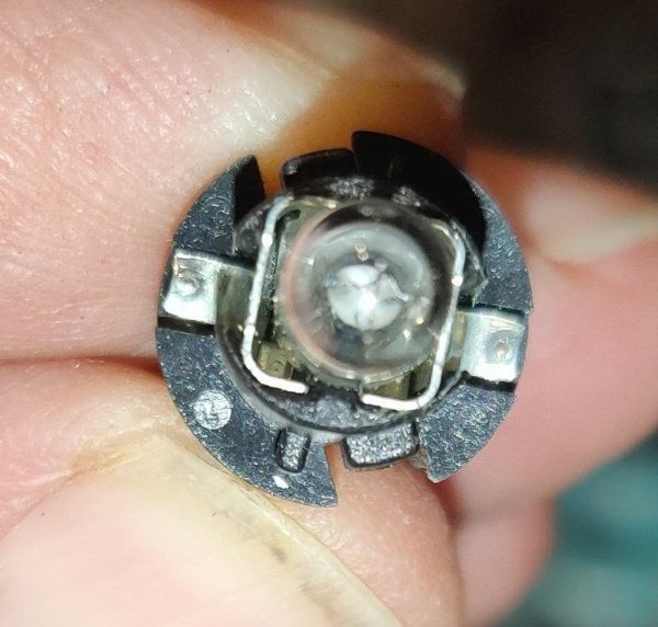 Voici un exemple sur un compteur d'AX GT avec ampoules identiques à celles de la Barchetta. Enlever l'ampoule d'airbag. Vous allez voir les contacts cuivrés